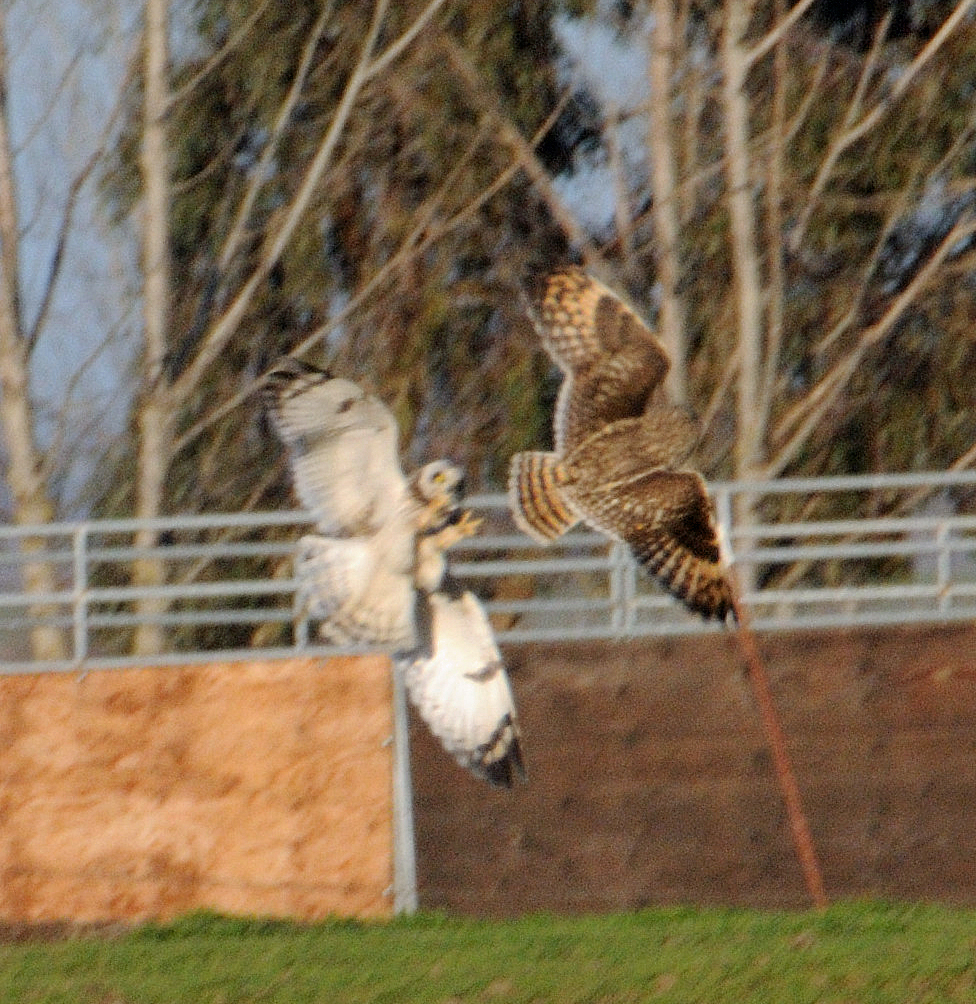 The third photo, at 493views, is of two short eared owls fighting in a field in Davis, California. Again, not best photo. However, you do get a sense of the underlying violence.